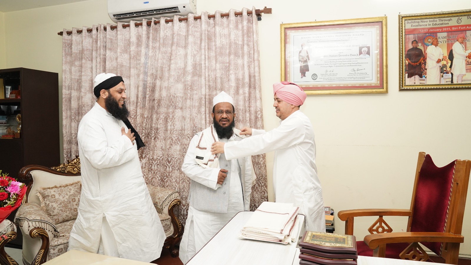 देहरादून। दारुल उलुम वक्फ बोर्ड देवबंद के प्रतिनिधिमण्डल ने शनिवार को श्री दरबार साहिब में श्रीमहंत देवेन्द्र दास जी महाराज से शिष्टाचार भेंट की। प्रतिनिधिमंण्डल में मुफ्ती मुहम्मद एहसान चीफ ओरगनाइजर ऑफ मुफ्तीज़ ऑल ओवर इण्डिया, चीफ मुफ्ती दारुल उलुम देवबंद, मुफ्ती गुफरान,  प्रोफेसर जमियत-उल-उलूम देवबंद, कारी साजिद साहब (पूर्व मंत्री देवबंद, उत्तर प्रदेश सरकार), मलिक मौजान, सामाजिक कार्यकर्ता देवबंद, मुफ्ती रहीश एहमद कासमी  शहर मुफ्ति देहरादून एवं चीफ इमाम उत्तराखण्ड व सदर जमित ओलामा हिन्द प्रबन्धक मदरसा जामियतुस सलाम, मौलाना तौहीद, मुजफ्फरनगर ने श्री दरबार साहिब में अमन-ओ- अमान, सभी की तरक्की और नेक राह पर चलने की दुआ मांगी। देवबंद से आए प्रतिनिधिमण्डल ने श्री दरबार साहिब के सज्जादे गद्दी नशीन श्रीमहंत देवेन्द्र दास जी महाराज को दारुल उलूम देवबंद आने का निमंत्रण दिया।