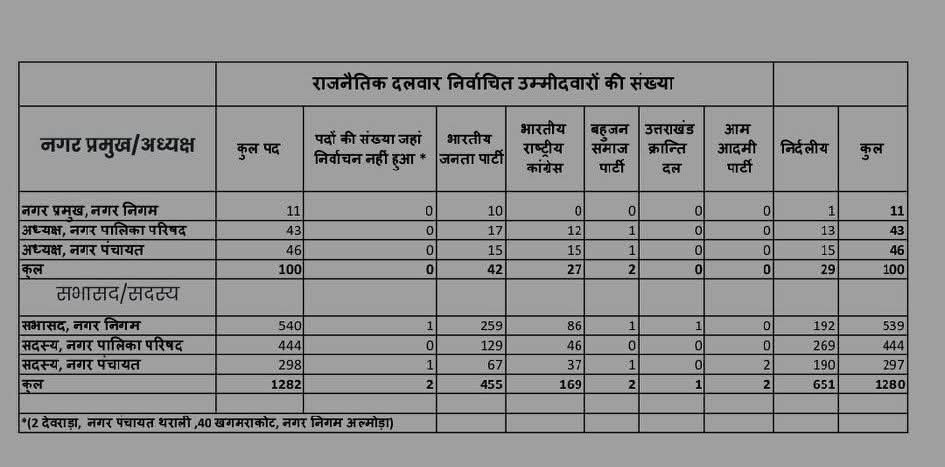 Home » Blog » उत्तराखंड : नगर निकाय चुनाव का फाइनल आंकड़ा …………