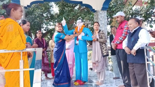 कोटद्वार : झंडीचौड़ उत्तरी मे स्थित अम्बेडकर पार्क मे संविधान दिवस बड़े धूमधाम से मनाया गया। बाबा साहेब डॉ. भीमराव अंबेडकर की प्रतिमा पर माला पहनाकर पुष्प अर्पित किए गए। इस अवसर पर गीता सिंह ने उपस्थित लोगों को सत्यनिष्ठा की शपथ दिलाते हुए संविधान दिवस की बधाई दी। कार्यक्रम में देश के संविधान को अंगीकृत, अधिनियमित और आत्मार्पित करते हुए पूरी निष्ठा और ईमानदारी के साथ संविधान की प्रस्तावना का पालन करने और अपने दायित्वों एवं कर्तव्यों का निर्वहन करने की शपथ ली गई। कार्यक्रम मे बड़ी संख्या मे क्षेत्रीय लोग उपस्थित रहे। कार्यक्रम में अम्बेडकर महिला मंच की जिलाध्यक्ष गीता सिंह, रंजना देवी, किसान मोर्चा के अध्यक्ष आलम सिंह,  देवसिंह ने अपने विचार व्यक्त किये।