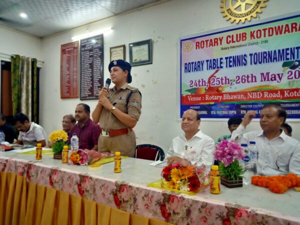 विशिष्ट अतिथि अपर पुलिस अधीक्षक जया बलूनी ने कहा कि जीवन में अनुशासन बनाए रखने व फिट रहने के लिए खेल बहुत आवश्यक है । बच्चों को खेलो के प्रति अपना हूनर दिखाने के लिए रोटरी क्लब ने प्लेटफार्म दिया है इसके लिए वे बधाई के पात्र है ।रोटरी क्लब के अध्यक्ष कुलदीप अग्रवाल ने अतिथियों का स्वागत करते हुए कहा कि रोटरी क्लब भविष्य में अन्य खेलो का भी आयोजन करायेगा । टूर्नामेंट के संयोजक वाईपी गिलरा ने गेम के नियम पढ़ कर सूनाएं तथा टूर्नामेंट के बारे मे जानकारी दी । इस अवसर पर कमल गुप्ता,अनीत चावला ने भी विचार व्यक्त किए । इस अवसर पर निशिथ माहेश्वरी, सिद्धार्थ नैथानी, अभिषेक कुकरेती, राकेश मोहन कण्डारी ने रैफरी का योगदान दिया । कार्यक्रम का संचालन सचिन गोयल ने किया ।