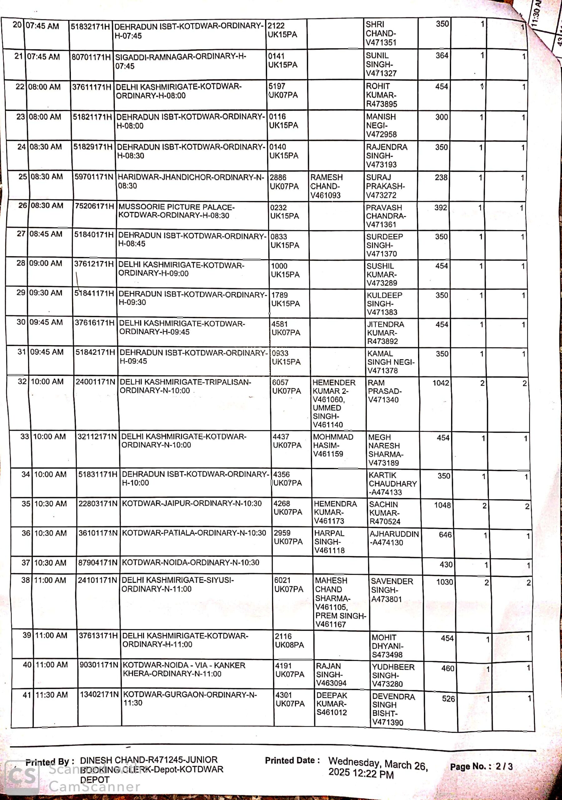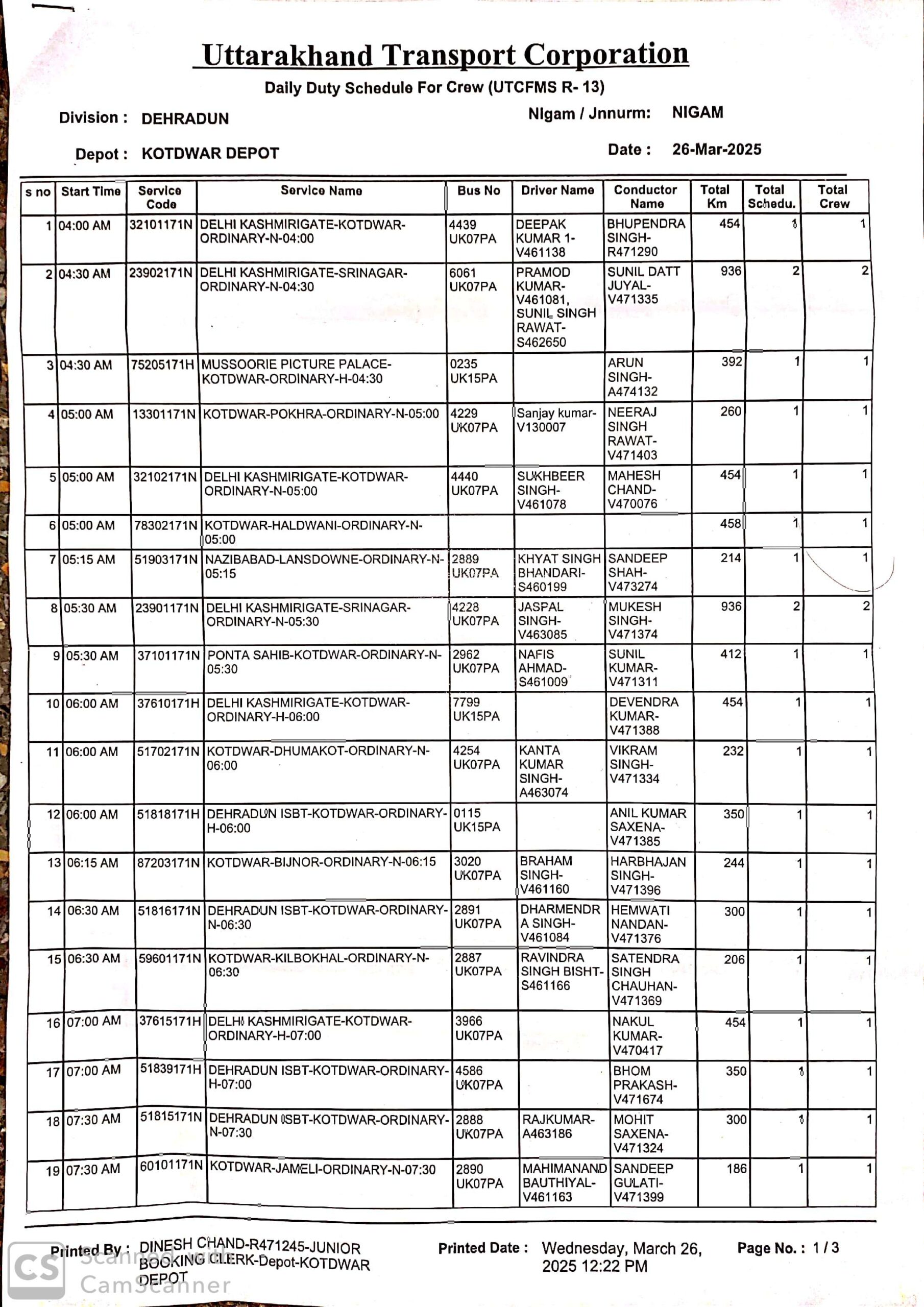 उत्तराखंड परिवहन निगम कोटद्वार डिपो से चलने वाली बसों की समय सारिणी एवं सूचि ……….