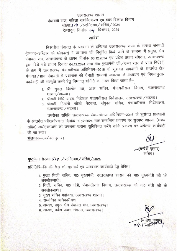 उत्तराखंड शासन ने क्षेत्र पंचायत एवं ग्राम पंचायत में प्रशासक की नियुक्ति को लेकर की कमेटी गठित