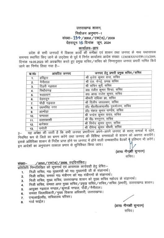 उत्तराखंड शासन ने सीनियर IAS अधिकारियों को दी जिलों की जिम्मेदारी, देखें आदेश