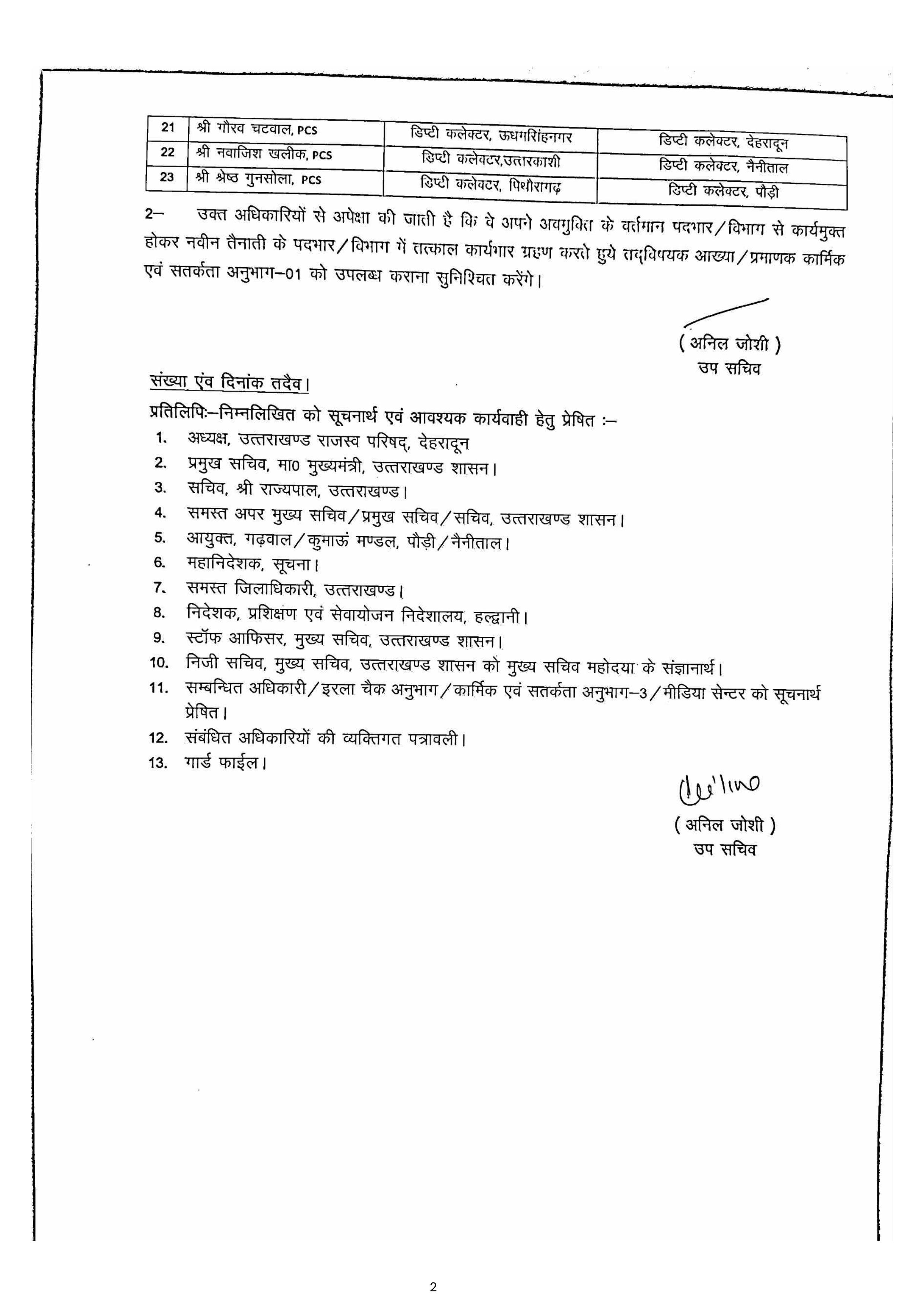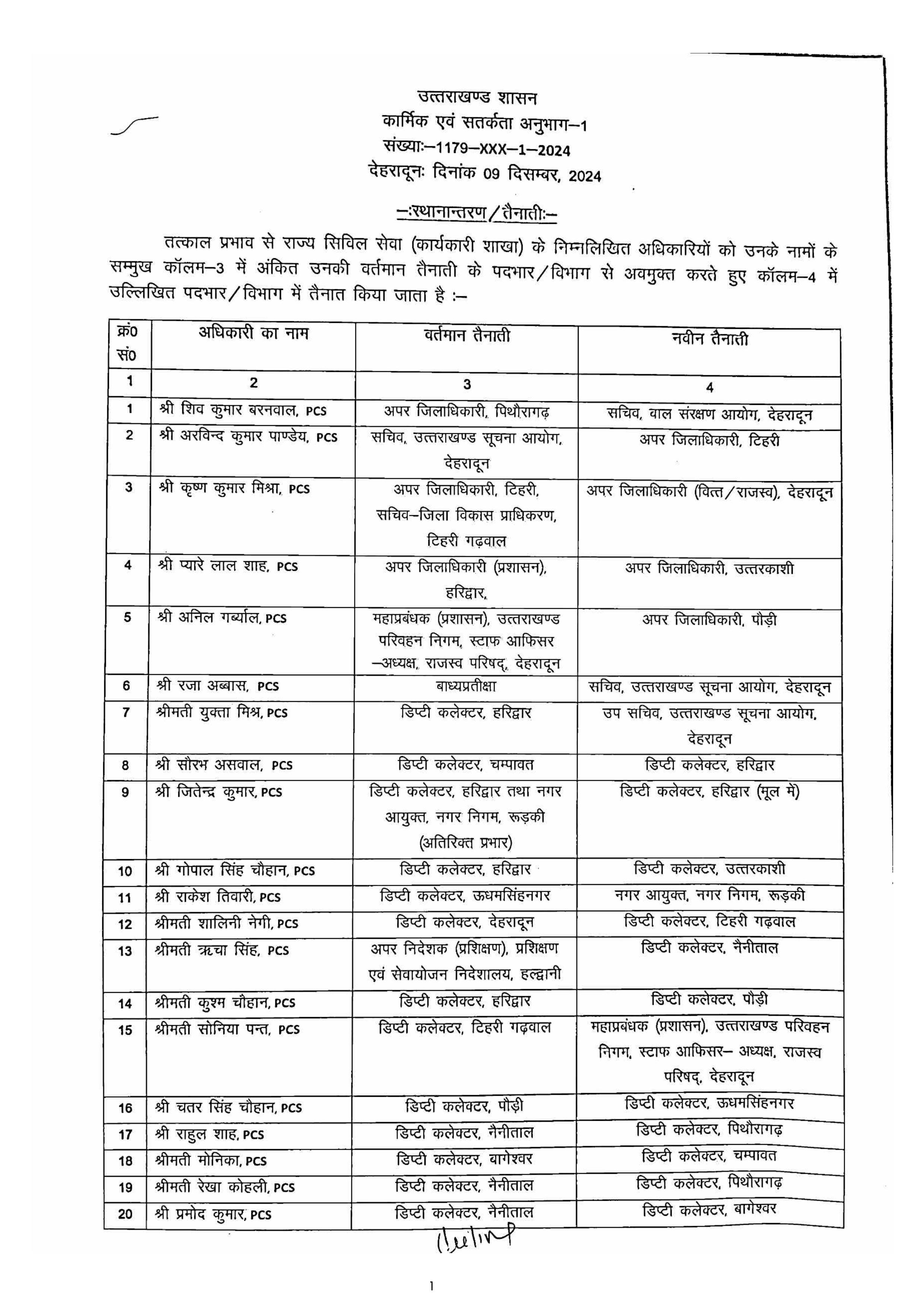 उत्तराखंड शासन ने 23 PCS अधिकारियों के किये स्थानान्तरण, देखें सूचि