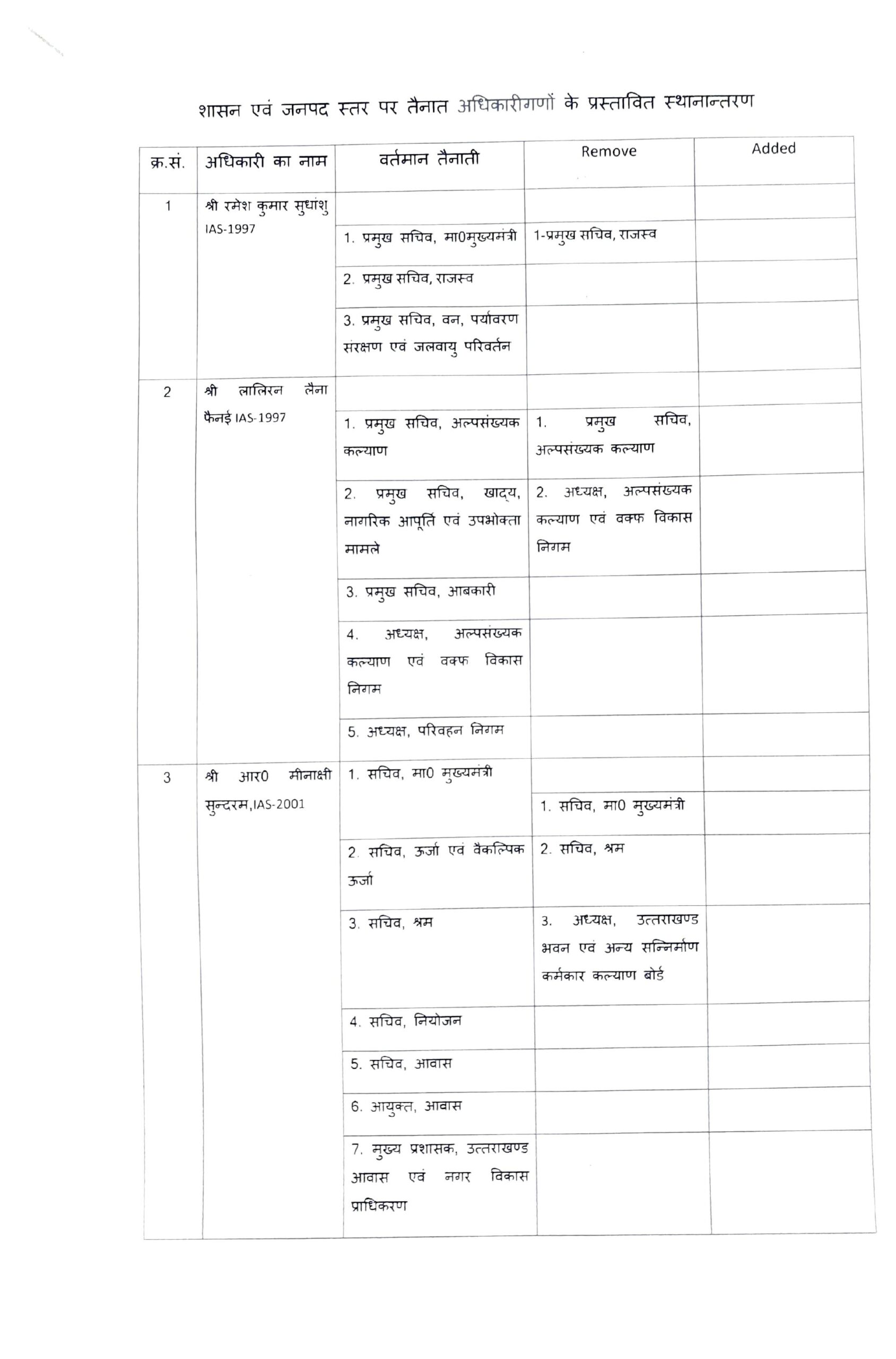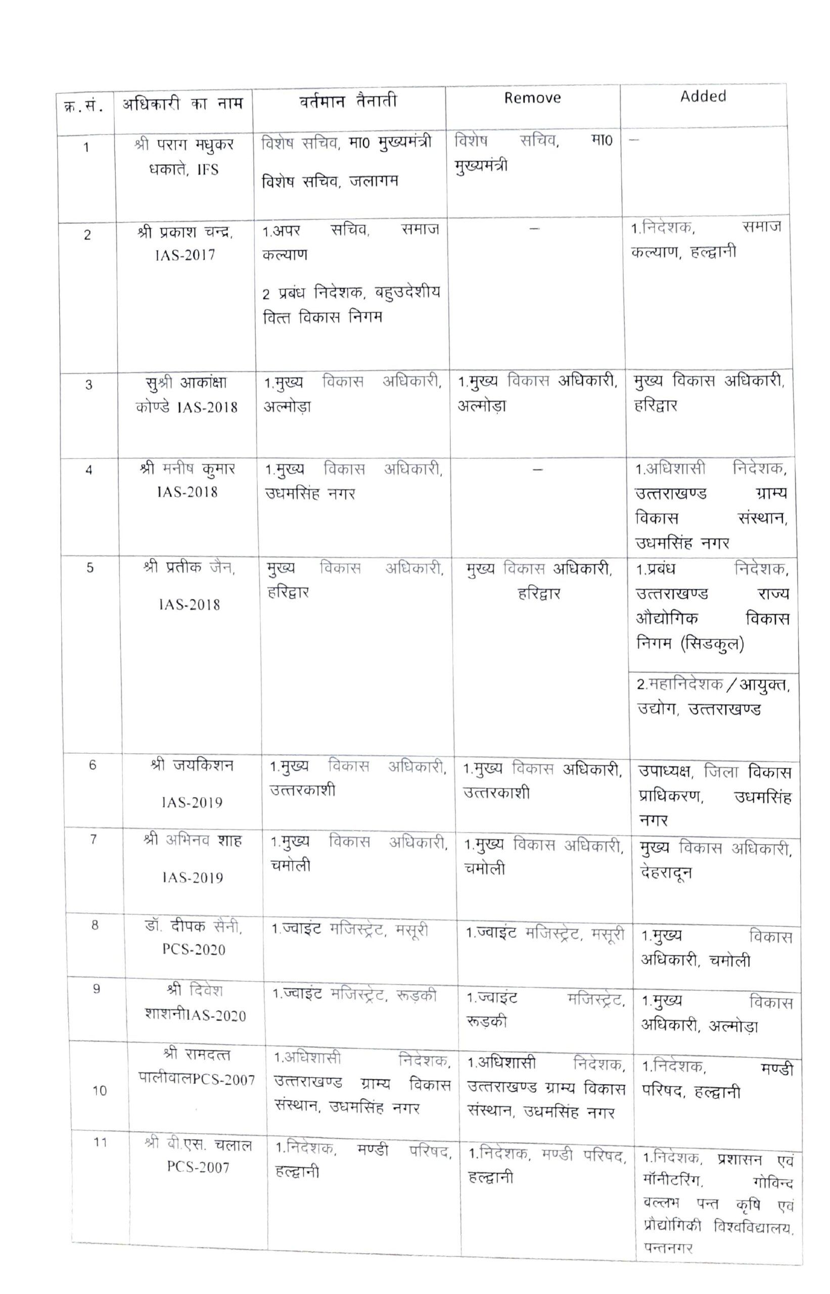 देहरादून : उत्तराखंड शासन ने किये IAS, IFS एवं PCS अधिकारियों के स्थानान्तरण, देहरादून-हरिद्वार सहित कई जिलों के बदले डीएम, देखें सूचि