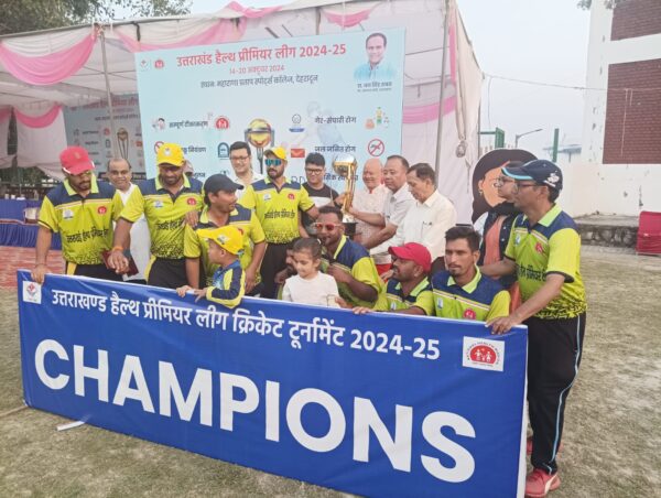 देहरादून : उत्तराखंड में स्वास्थ्य जागरूकता को बढ़ावा देने के उद्देश्य से आयोजित “उत्तराखंड हेल्थ प्रीमियर लीग” क्रिकेट टूर्नामेंट का समापन भव्यता से हुआ। इस अनोखे टूर्नामेंट का मुख्य उद्देश्य स्वस्थ जीवनशैली को बढ़ावा देना और विभिन्न स्वास्थ्य मुद्दों के प्रति जागरूकता फैलाना था। इस टूर्नामेंट के प्रथम संस्करण का विजेता रहा उत्तराखंड पावर कॉर्पोरेशन लिमिटेड (यूपीसीएल), जिन्होंने “थोड़ा कम, तेल, चीनी और नमक” थीम पर आधारित मैच खेला। यूपीसीएल ने अपने उत्कृष्ट प्रदर्शन से सीएमओ किंग्स 11 को 28 रनों से हराया, जो “शिशु स्वास्थ्य- ओ.आर.एस. का घोल पिलाओ, डायरिया को दूर भगाओ” थीम के अंतर्गत मैच खेल रहे थे। यूपीसीएल ने टॉस जीतकर पहले बल्लेबाजी करते हुए बीस ओवर में 7 विकेट के नुकसान में 172 रन बनाए। जवाब में सीएमओ किंग्स 11 की टीम ने निर्धारित बीस ओवर में 144 रन ही बना पाए। फाइनल मुकाबले में संजय जोशी ने 5 विकेट लिए, जिसके लिए उन्हें मैन ऑफ द मैच से नवाजा गया।