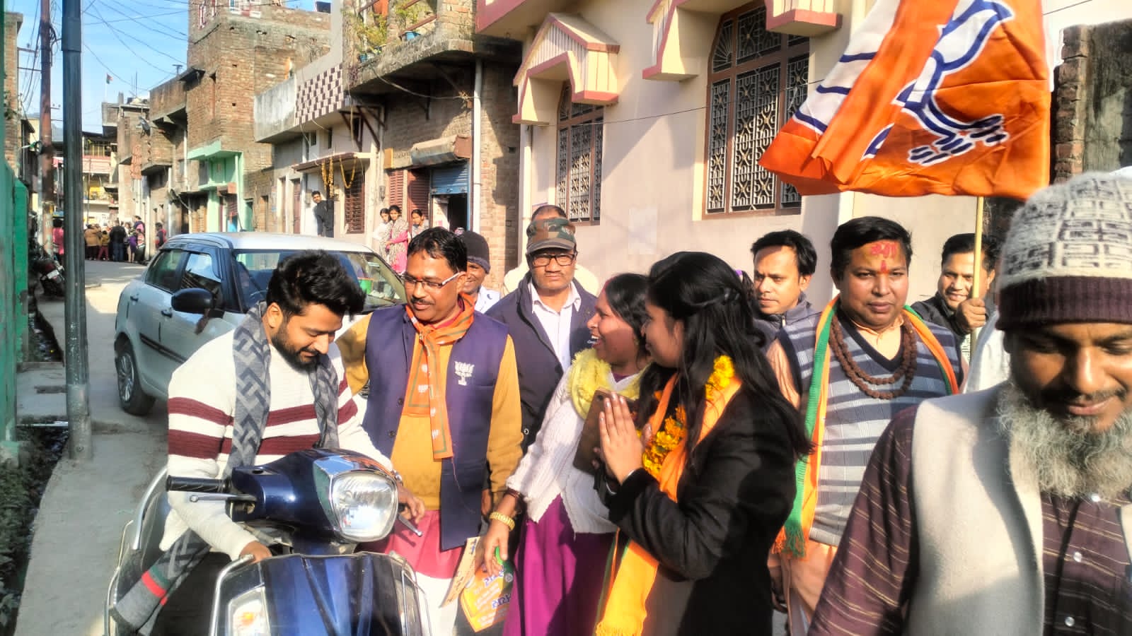 निकाय चुनाव में जहां भाजपा संगठन द्वारा मेयर प्रत्याशी को जीताने के लिए पूरी ताकत झोंकी की जा रही है, वहीँ उत्तराखंड मदरसा शिक्षा बोर्ड के अध्यक्ष मुफ्ती शमून कासमी एवं भारतीय जनता पार्टी ओबीसी मोर्चा के प्रदेश आईटी सेल प्रभारी पवन भारद्वाज भी पूरे दलबल के साथ भाजपा के मेयर  प्रत्याशी शैलेन्द्र सिंह रावत और पार्षद प्रत्याशियों के लिए डोर टू डोर जाकर जनसंपर्क कर रहे हैं। आज उन्होंने गाड़ीघाट, झूला बस्ती, लकड़ी पड़ाव, मुख्य बाजार सहित क्रिश्चन कॉलोनी में मेयर प्रत्याशी शैलेन्द्र सिंह रावत और वार्ड प्रत्याशी के पक्ष में लोगों से वोट देने की अपील की। इस दौरान उन्होंने कहा कि जिस प्रकार प्रदेश में विकास की गंगा बह रही है, उसी प्रकार मेयर व पार्षदों को जिताना जरूरी है, ताकि यहां भी चहुमुखी विकास हो सके। क्योंकि पूर्व के प्रतिनिधियों ने सिर्फ निजी हित साधने का काम किया।