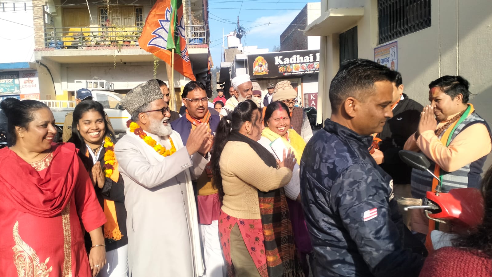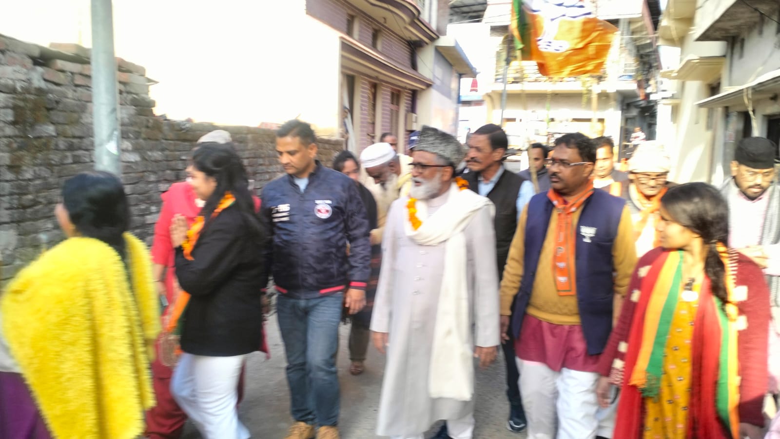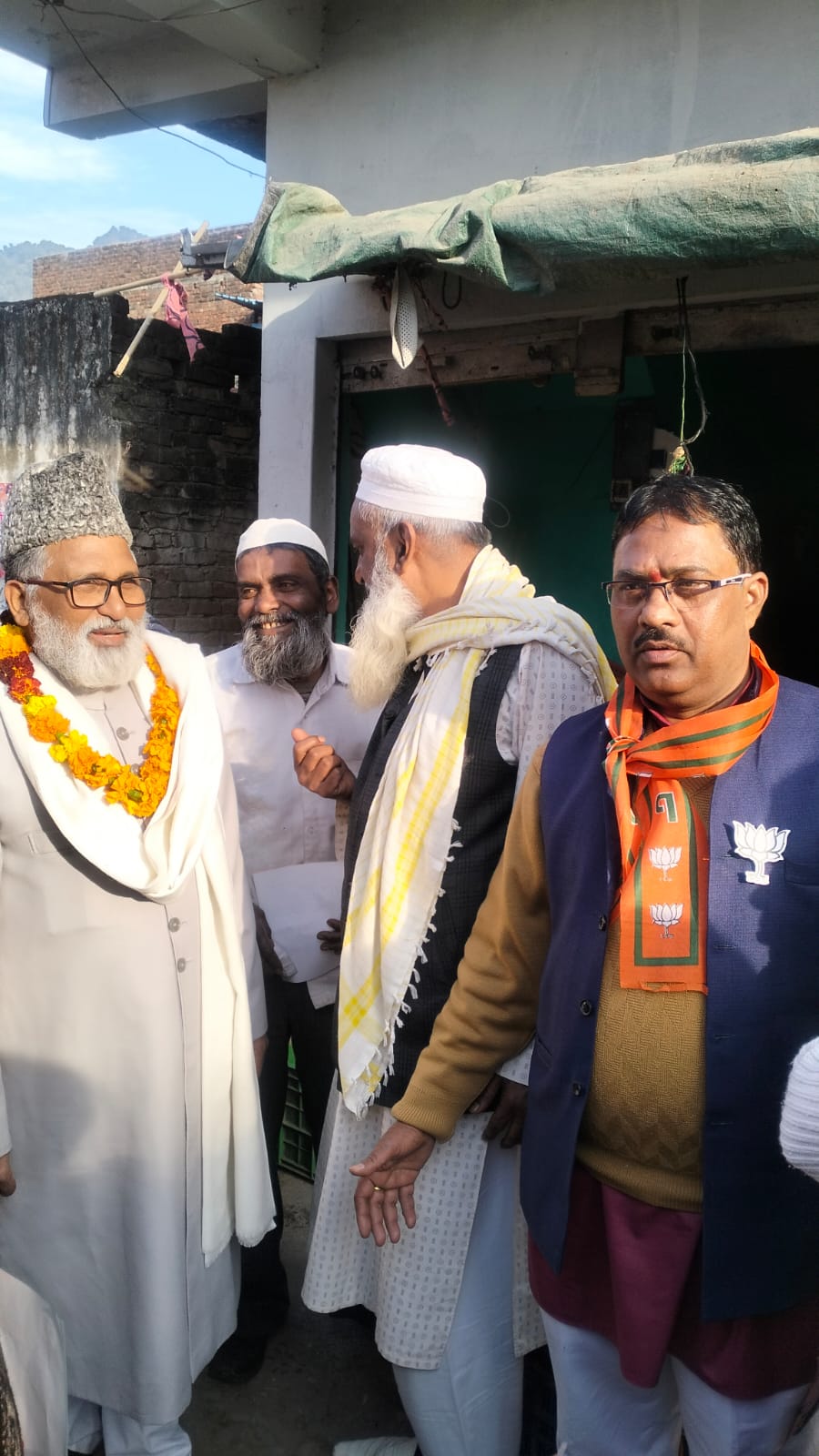 भाजपा के मेयर प्रत्याशी शैलेन्द्र सिंह रावत के लिए डोर टू डोर जाकर वोट मांग रहे हैं उत्तराखंड मदरसा शिक्षा बोर्ड के अध्यक्ष मुफ्ती शमून कासमी एवं बीजेपी नेता पवन भारद्वाज