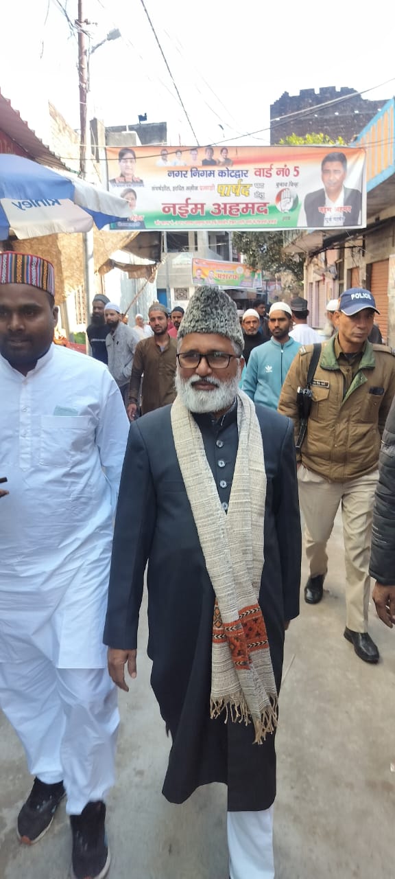 कोटद्वार : उत्तराखंड मदरसा शिक्षा बोर्ड के अध्यक्ष मुफ्ती शमून कासमी ने कोटद्वार नगर निगम से मेयर पद के भाजपा प्रत्याशी शैलेन्द्र सिंह रावत के लिए घर – घर जाकर प्रचार किया. उन्होंने कहा कि भाजपा प्रत्याशी शैलेन्द्र सिंह रावत को जनता का अपार प्यार व समर्थन मिल रहा है. उन्होंने अपने विधायक के कार्यकाल में बहुत ही सरहानीय कार्य किये हैं. जिसको लेकर आमजन में उनकी अलग छाप बनी है ओर अब वह जनता के बीच जा रहे तो उन्हें जनता का बड़ा समर्थन मिल रहा है. उत्तराखंड मदरसा शिक्षा बोर्ड के अध्यक्ष मुफ्ती शमून कासमी ने बताया कि भाजपा प्रत्याशी लगातार जनता के बीच रहकर क्षेत्र की हर समस्या के समाधान का प्रयास करते रहते है। उन्हीं कार्यों की वजह से आज जनता उनके साथ है, ओर जनता का प्यार निश्चित तौर पर उनकी जीत की राह को आसान करेगा.
