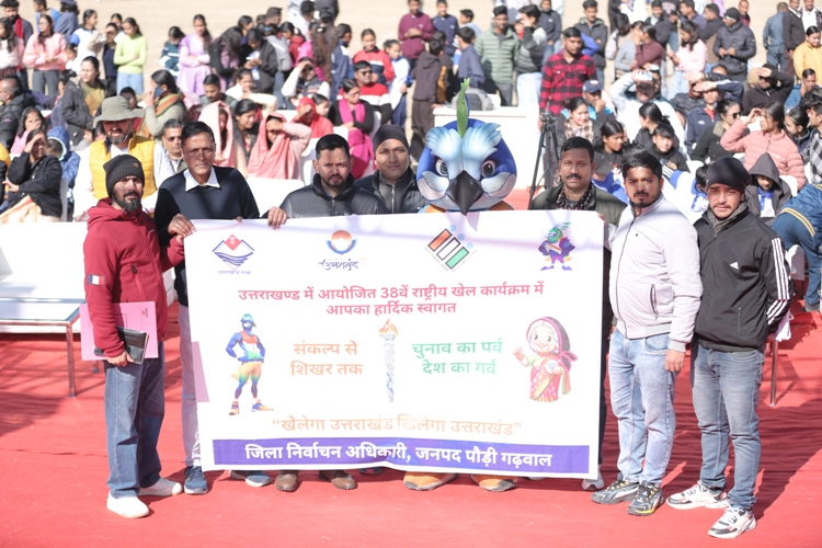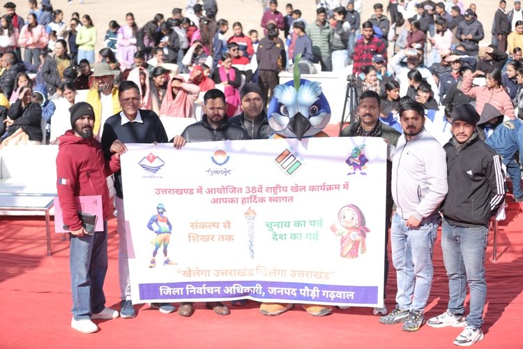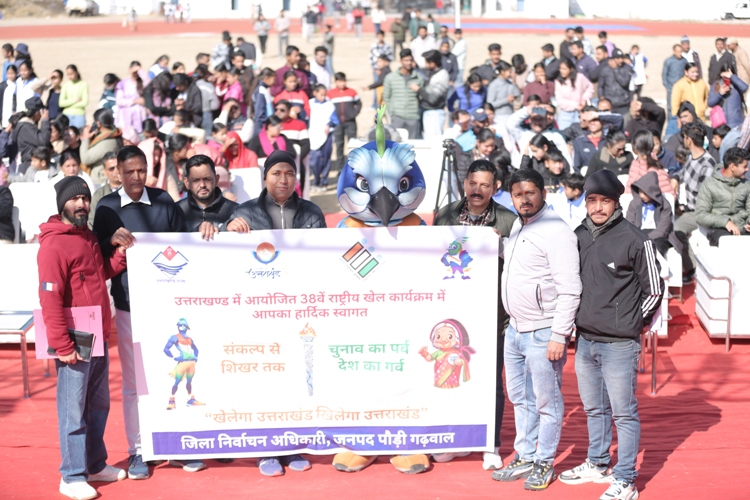 पौड़ी : 38वें राष्ट्रीय खेल के शुभंकर मौली व मशाल तेजस्विनी मुख्यालय पौड़ी पहुंचने पर भव्य स्वागत किया गया। इस दौरान शहर में मौली व मशाल की रैली के साथ-साथ मतदाता जन जागरुकता रैली भी निकाली गई। जिला निर्वाचन अधिकारी व जिलाधिकारी डॉ. आशीष चौहान ने एजेंसी चौक से मतदाता रैली को रवाना किया। इस दौरान मतदाता जन जागरूकता रैली एजेंसी चौक से बस अड्डा, धारा रोड़, अपर बाजार से रांसी स्टेडियम पहुंची। रैली में शामिल विभिन्न विभागों के अधिकारी, स्कूली छात्र-छात्राएं व स्थानीय लोगों ने आने वाले चुनावों में अधिक से अधिक मतदान हो इसके लिए लोगों को जागरूक किया। जिला निर्वाचन अधिकारी ने रांसी स्टेडियम में निर्वाचन विभाग के तत्वाधान में सभी निर्वाचनों के साथ ही आगामी चुनावों में अपने मतदान का उपयोग करने की शपथ दिलाई। उन्होंने कहा कि आगामी चुनावों में अधिक से अधिक मतदान हो इसके लिए स्वयं व अन्य लोगों को भी जागरूक करें।