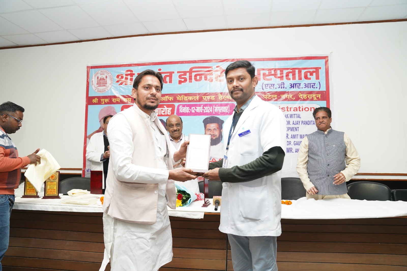 डब्ल्यू एमएफ मानवाधिकार महासंघ उत्तराखण्ड की ओर से आयोजित सम्मान समारोह में मुख्य अतिथि राजकुमार सिंधु ने कार्यक्रम का शुभारंभ किया। उन्होंने कहा कि रमजान ए पाक का महिना सेवा का संदेश भी देता है। मानव सेवा ही सच्ची सेवा है। उन्होंने कहा कि श्री महंत इन्दिरेश अस्पताल के द्वारा गरीब एवं जरूरतमंद मरीजों को हरसम्भव उपचार सेवाएं उपलब्ध करवाई जा रही हैं। पश्चिम उत्तर प्रदेश से भी भारी संख्या में मरीज़ उपचार के लिए श्री महंत इन्दिरेश अस्पताल में पहुंचते हैं। जब ये मरीज़ और पूर्ण स्वास्थ्य लाभ लेकर वापिस क्षेत्रों में अस्पताल की सेवाओं की सराहना करते हैं तो इससे क्षेत्र में अस्पताल की ख्याति और बढ़ जाती है। उन्होंने अस्पताल की प्रबन्ध समिति, उच्चाधिकारियों सहित डॉक्टरों एवं स्टाफ के कार्यों एवं सहयोग की सराहना की। कार्यक्रम का संचालन सिमरन अग्रवाल ने किया। इस अवसर पर वर्मन चौधरी, मोहम्मद सलमान, प्रदेश अध्यक्ष भारतीय किसान मजदूर संयुक्त मोर्चा, दलचन्द्रा आदि उपस्थित रहे।
