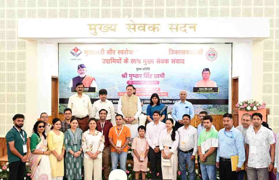 देहरादून। मुख्यमंत्री पुष्कर सिंह धामी ने गुरूवार को मुख्यमंत्री आवास स्थित मुख्य सेवक सदन में मुख्यमंत्री सौर स्वरोजगार योजना के विकासकर्ताओं के साथ मुख्य सेवक संवाद कार्यक्रम में प्रतिभाग किया। इस अवसर पर मुख्यमंत्री ने घोषणा की कि मुख्यमंत्री सौर स्वरोजगार योजना से जुड़ी महिलाओं को सौर सखी नाम दिया जायेगा। मुख्यमंत्री सौर स्वरोजगार योजना और स्वरोजगार से जुड़ी अन्य योजनाओं को व्यापक स्तर पर बढ़ावा देने विकासखण्डों में विशेष शिविरों के आयोजन किये जायेंगे। सौर प्लांटों के रख-रखाव के लिए प्रत्येक जनपद में लोगों को प्रशिक्षण दिया जायेगा।