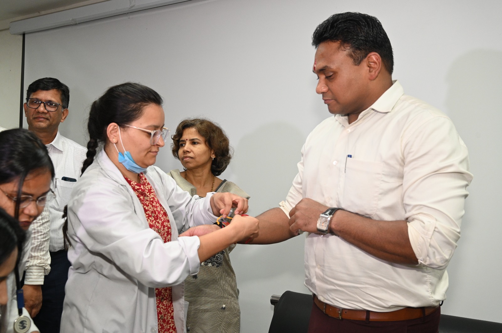दून मेडिकल कॉलेज की प्राचार्य डॉक्टर गीता जैन ने कहा कि आज उनके कॉलेज का महिला स्टाफ खुश है.. क्योंकि रक्षाबंधन पर उन्हें उनके भाई स्वास्थ्य सचिव की तरफ से सुरक्षा का आश्वासन मिला है। दून मेडिकल कॉलेज में रेजीडेंट डॉक्टर ईशान सिंह ने कहा कि जिस तरीके से पश्चिम बंगाल में महिला डॉक्टर के साथ घटना घटी है उसे पूरे देश में आक्रोश है और तरफ महिला डॉक्टर की सुरक्षा का सवाल उठने लगा है। इस दौरान डॉ आशुतोष सयाना, डॉक्टर गीता जैन, डॉ अनुराग अग्रवाल, डॉक्टर धनंजय डोभाल, डॉक्टर एमके पंत, डॉ अनिल जोशी, डॉ नितिन, डॉक्टर शिव, डॉ अंकुर पांडे, डॉ योगेश्वरी, दून मेडिकल कॉलेज के पीआरओ महेंद्र भंडारी के अलावा विनोद नैनवाल, प्रमोद मिश्रा, नवीन खंडूरी मौजूद रहे।