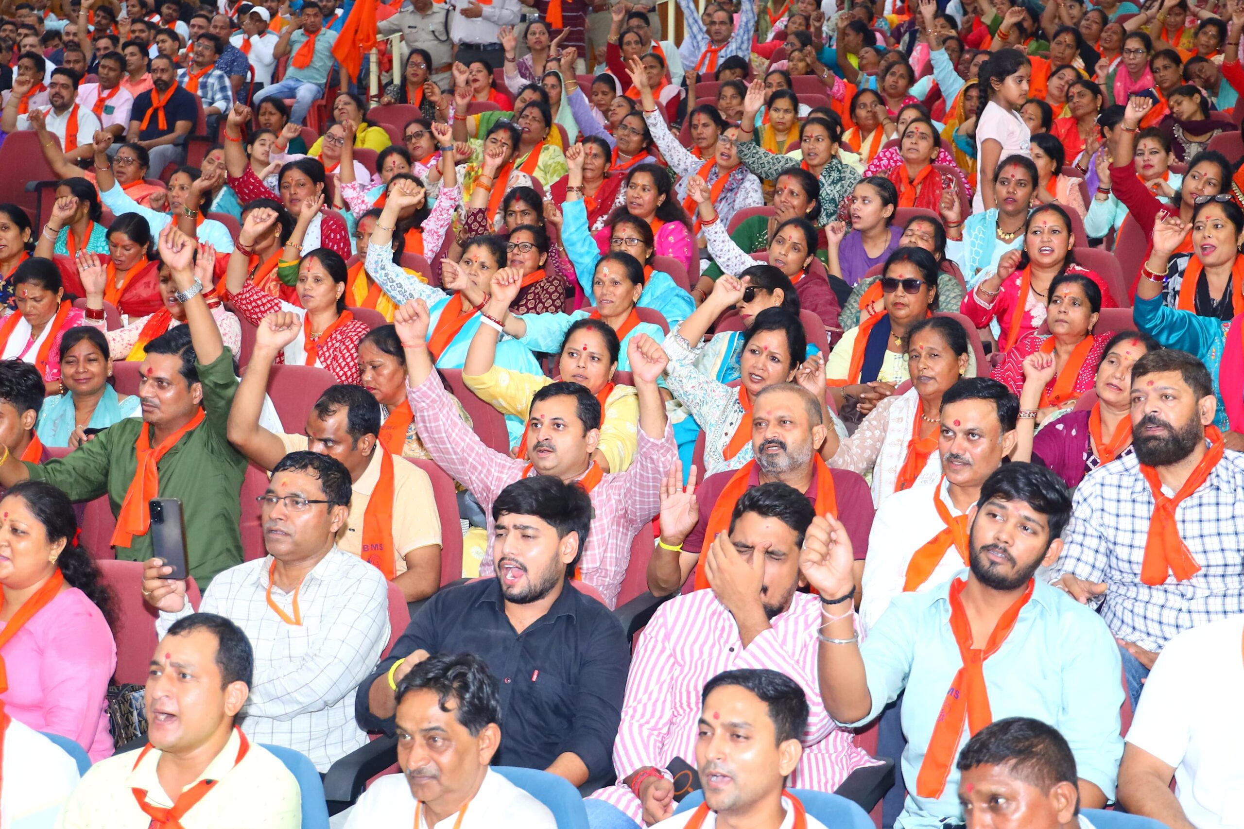 उन्होंने कहा कि 7 दशक पूर्व देश में श्रामिकों द्वारा संचालित आंदोलनों पर विदेशी विचारधारा से प्रभावित होने के कारण स्वदेशी विचारधारा शून्य रहती थी। उस समय आंदोलनो में वंदे मातरम एवं भारत माता की जय का उद्घोष करने पर विकट स्थिति उत्पन्न हो जाया करती थी। संगठन एक विशाल वृझ बनकर श्रमिकों के हितों के लिए कार्य कर रहा है। संगठन ने देश के श्रमिकों, विद्यार्थियों, एवं युवाओं को एक नई विचारधारा दी है। आज हमारी सरकार श्रमिकों के हितों को ध्यान में रखकर अनेक योजनाओं के अंतर्गत कार्य कर रही है, देश के अंतिम छोर के व्यक्ति तक इन योजनाओं का लाभ प्राप्त हो रहा है। सरकार द्वार चलाए जा रहे श्रम पोर्टल पर करोड़ो श्रमिकों का पंजीकरण हुआ है। हमारी सरकार श्रमिकों के हितों के इएसआई, इएफओं, बीमा की सुविधा दे रही है।