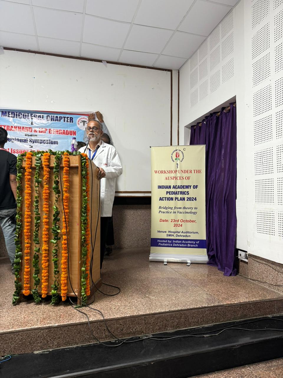 उपाध्यक्ष, आई.ए.पी.( इंडियन एकेडमी ऑफ पीडियाट्रिक्स) उत्तरी जोन, डाॅ. सतीश शर्मा ने कोल्ड चेन विषय पर प्रकाश डाला। उन्होने विभिन्न टीकों को कैसे संग्रहित किया जाए और अनुकूल तापमान कैसे बनाए रखा जाए इसके बारे में विस्तार से बताया। वरिष्ठ शिशु एवं बाल रोग विशेषज्ञ, चिरंजीव अस्पताल, रूड़की, डाॅ. सुधीर चौधरी ने अपने विषय टीकाकरण के बाद पेश आने वाली प्रतिकूल घटनाएं (साईड इेफैक्टस), ए.इ.एफ.आई. के बारे में बताया। उन्होंने शिशु एवं बाल रोग विशेषज्ञों को बताया कि विभिन्न टीकाकरण के बाद उभरने वाले दुष्प्रभावों को कैसे नियंत्रित किया जाए।