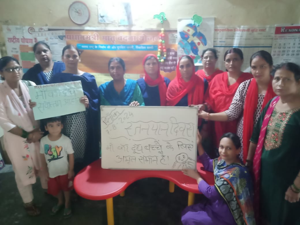 Home » Blog » विश्व स्तनपान सप्ताह : आंगनबाड़ी केन्द्रों पर मेहँदी एवं पेंटिंग प्रतियोगिता के माध्यम से महिलाओं एवं किशोरियों को स्तनपान के बारे में किया जागरूक, जिला कार्यक्रम अधिकारी सुलेखा सहगल ने दी यह महत्वपूर्ण जानकारी ………..