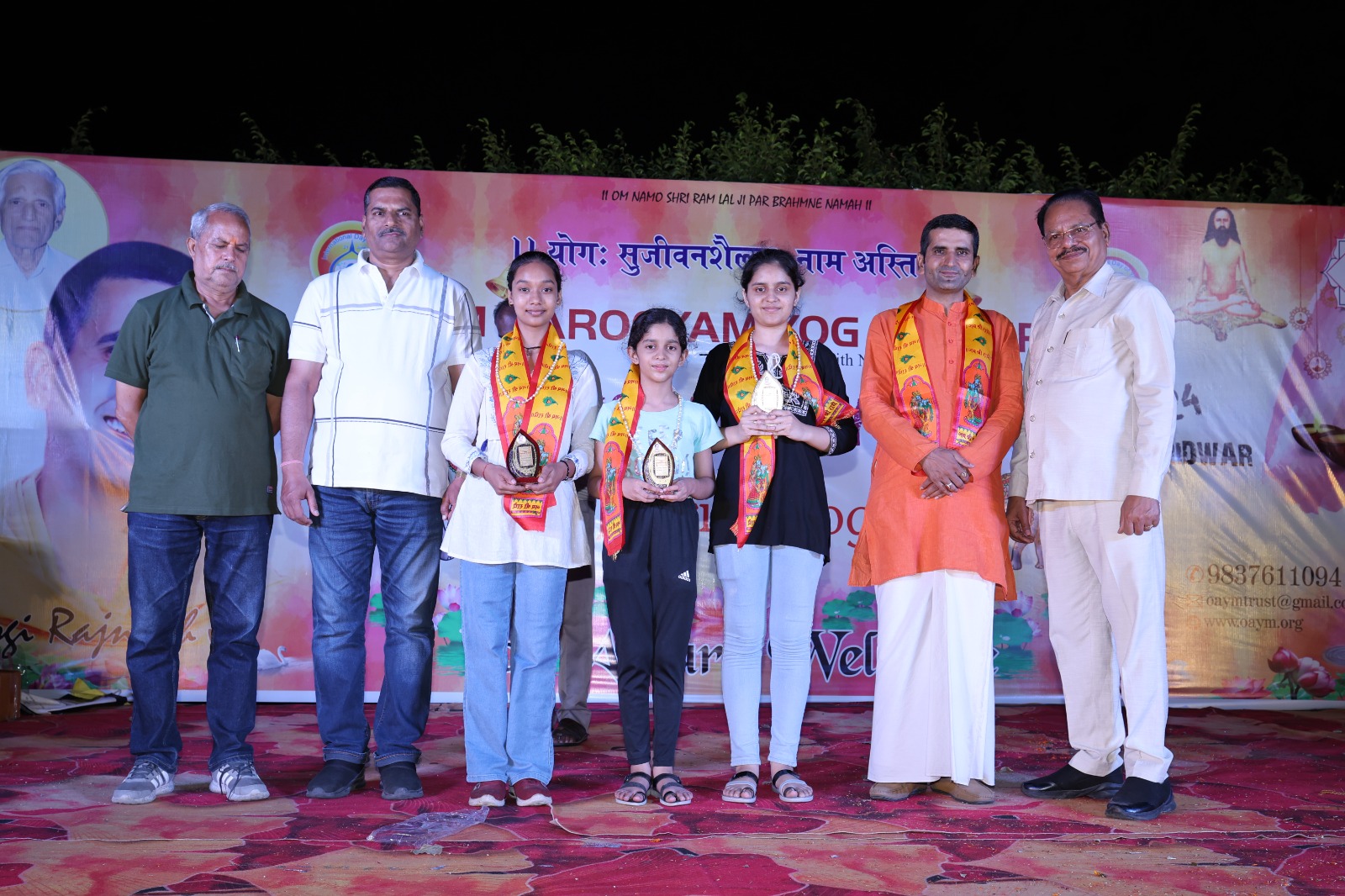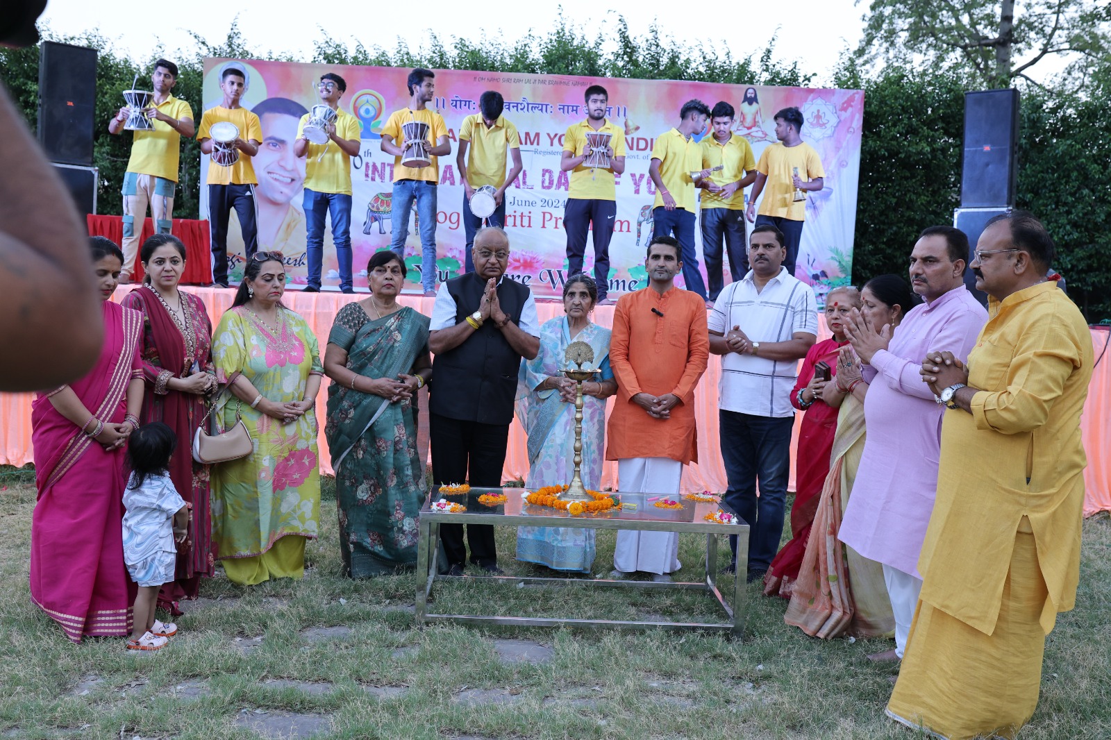 हरिद्वार : ओम आरोग्यं योग मंदिर द्वारा 10वें अंतर्राष्ट्रीय योग दिवस का आयोजन संध्याकाल में गौतम फार्म कनखल में किया गया कार्यक्रम का शुभारंभ संस्था के अध्यक्ष योगी रजनीश के साथ मुख्य अतिथि योगेश मोहन गुप्ता कुलपति आई.आई.एम.टी. यूनिवर्सिटी मेरठ, दिव्या पंजवानी, डॉ राजेंद्र पाराशर, अधीर कौशिक, दिव्या पंजवानी, कुशा टक्कर, बीटा गर्ग, अर्चना शर्मा आदि ने संयुक्त रूप से किया।